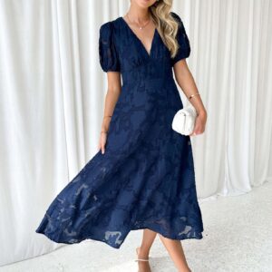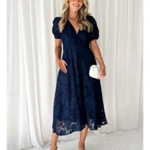 Vestido Suave De Mujer Con Cuello En V Y Manga Larga – Vestido Lois